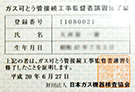 都市ガス業界の統一資格です。メーターからガス栓までの露出部分をフレキ管による工事を行う資格です。![]() |